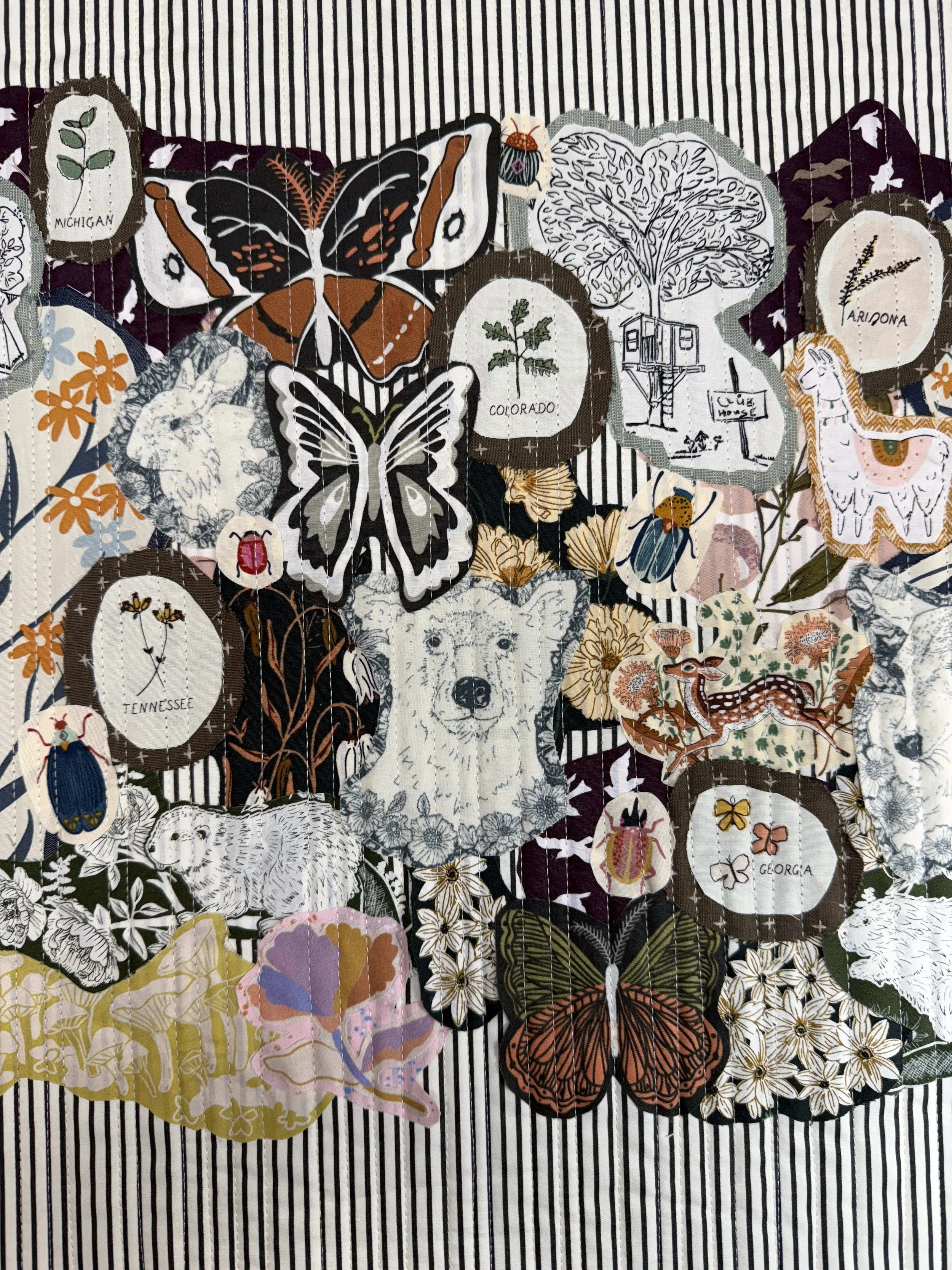 This summer, I wanted my postcard to capture the adventures I’d had bits of sunshine, movement, and color, all tucked into fabric. Each cut scrap represents a little piece of where I’ve been and what I’ve done, stitched together into one happy memory.