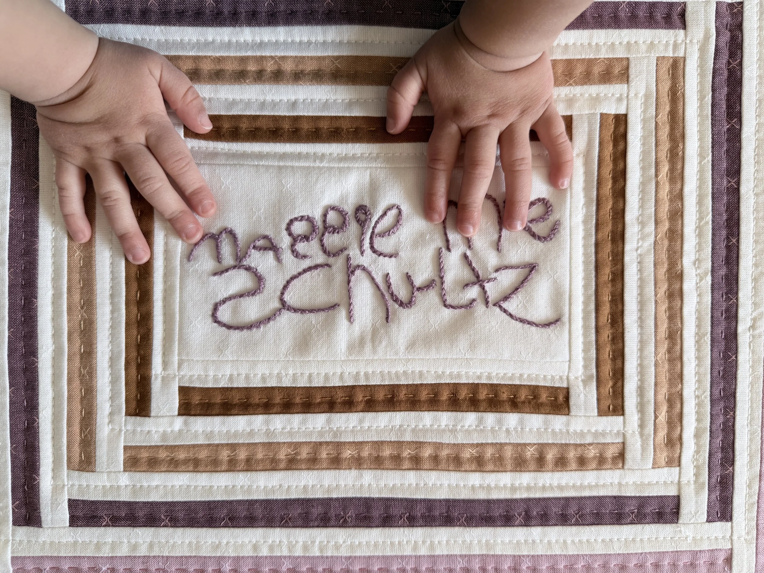 My 4-year-old niece Maggie is at that stage where she's learning to write her name, and her handwriting right now is the sweetest thing. I wanted to capture the way she currently signs her name and turn it into something my sister could keep forever. Of course, I had to add the quilting touches.