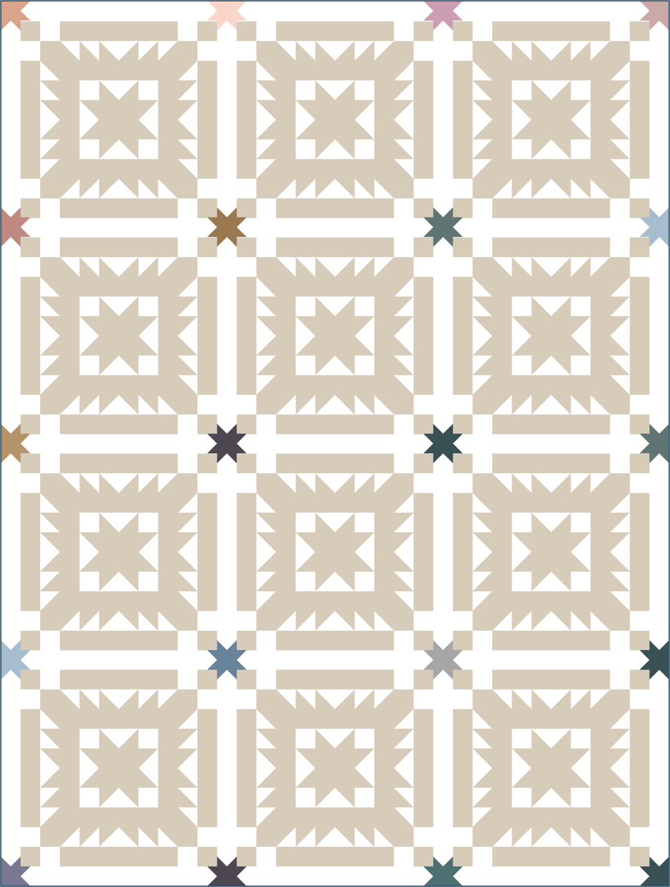 Added Background: Fabric A, C, D make the block | Fabric E cornerstone | Fabric B + F background